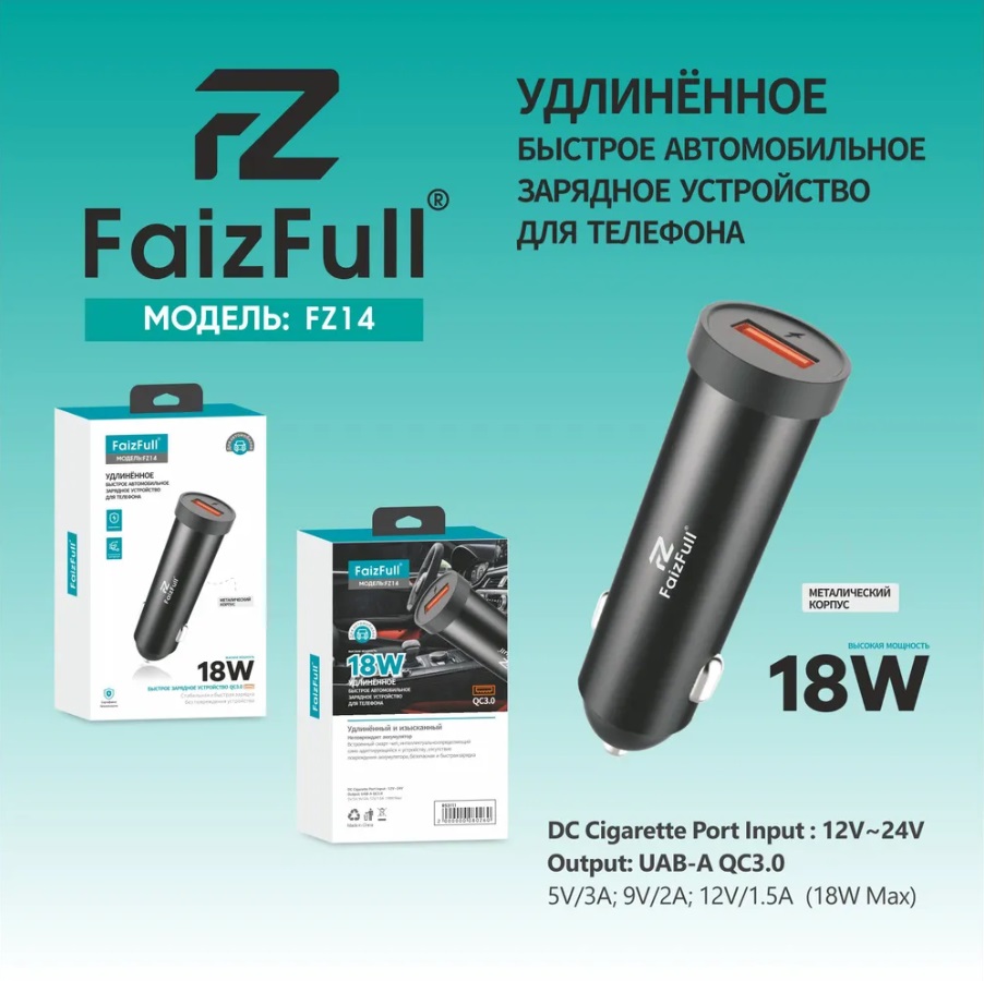 Поддержка быстрой зарядки QC3.0/2.0+Huawei FCP,Samsung AFC; Uвх=100-240VAC; Uвых=3.6–6.5V/3A, 6.6–9V/ 2A, 9.1–12 V/1.5А, 18W;