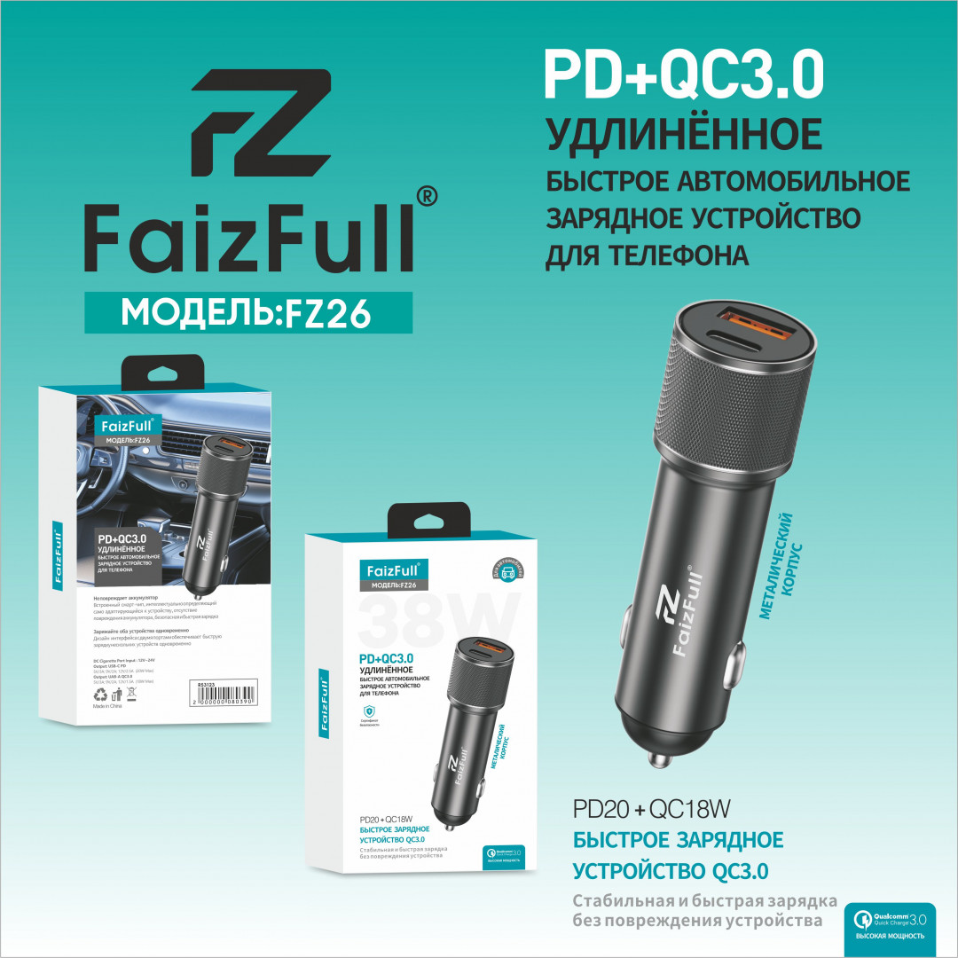 Поддержка быстрой зарядки QC3.0/2.0+Huawei FCP,Samsung AFC; Uвх=100-240VAC; Uвых=3.6–6.5V/3A, 6.6–9V/ 2A, 9.1–12 V/1.5А, 18W; уп.36/216шт.