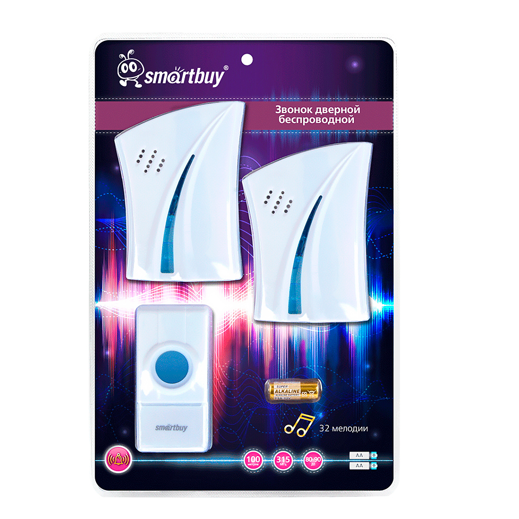 1 кнопка; дистанция до 80м; 24 мелодии; питание: звонок 2*АА (в комплект не входят); цвета в ассортименте