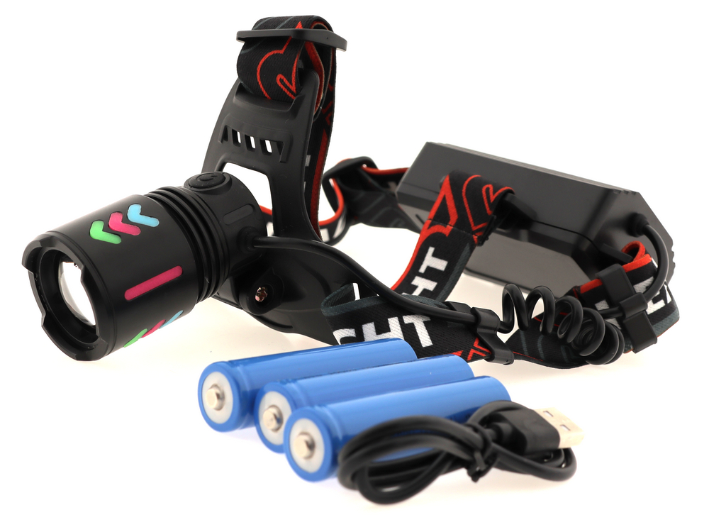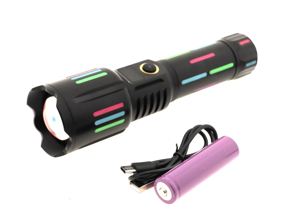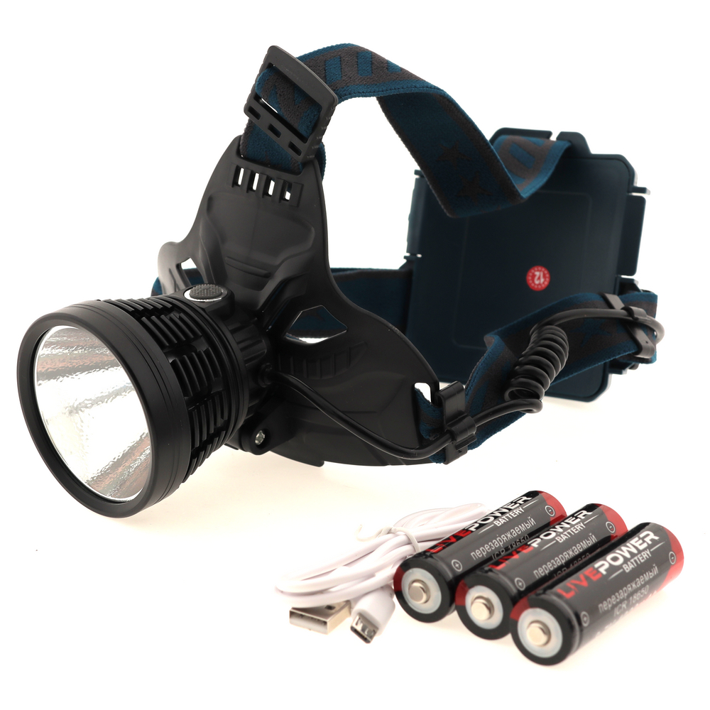 1LED P50; питание 3xLi-ion18650, зарядка через шнур USB