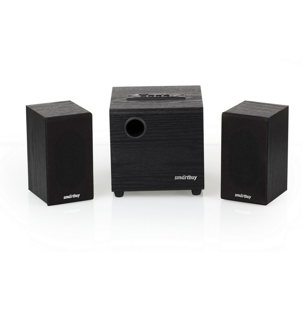 стерео 2.1;питание 220В;50 Вт(RMS);20-20000Гц;пульт управления;сабвуфер 160х272х160 мм; колонки 100х220х100 мм.
