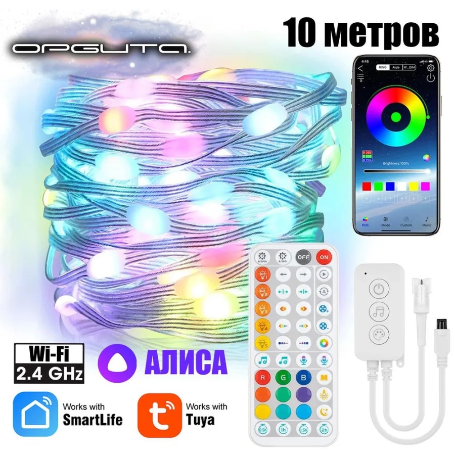 светодиодная; светодиоды- 100шт, 220V, IP20, провод зеленый