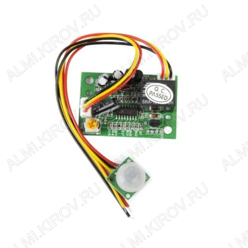 Пироэлектрический инфракрасный датчик движения, с регулировкой чувствительности и времени срабатывания.