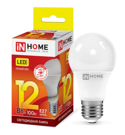 Лампа светодиодная 220В/ 12,0Вт/ E27/ 3000К (теплый белый) (L636)/ 1080Lm (4690612020235); INHOME