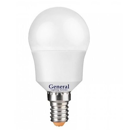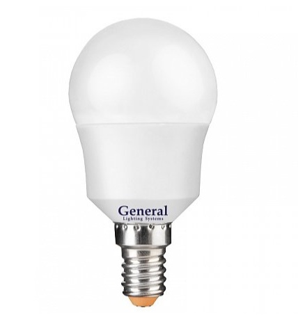 Лампа светодиодная 220В/ 08.0Вт/ E14/ 6500К (холодный белый) 660lm GLDEN-G45F-8-230-E14-6500 General