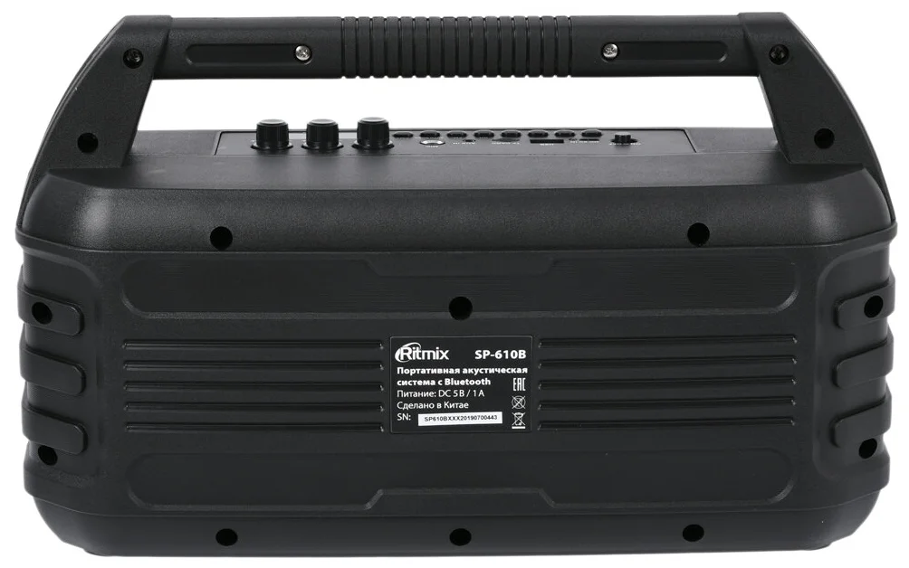 Портативная колонка RITMIX SP-610B позволит вам не скучать дома, на даче и в походе. Два динамика суммарной мощностью 20 Вт обеспечат объемный звук. Источником питания служит литий-полимерный аккумулятор. Его заряда хватает на 5 ч работы. Колонка воспроизводит звуковые файлы MP3, WMA форматов, поддерживает Bluetooth, есть выход USB, встроенный радиоприемник. Благодаря наличию порта для карты памяти вы можете прослушивать файлы с microSD карт.