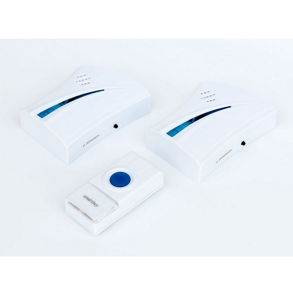 1 кнопка и 2 динамика; дистанция до 80м; 32 мелодии; питание звонка от эл. питания;