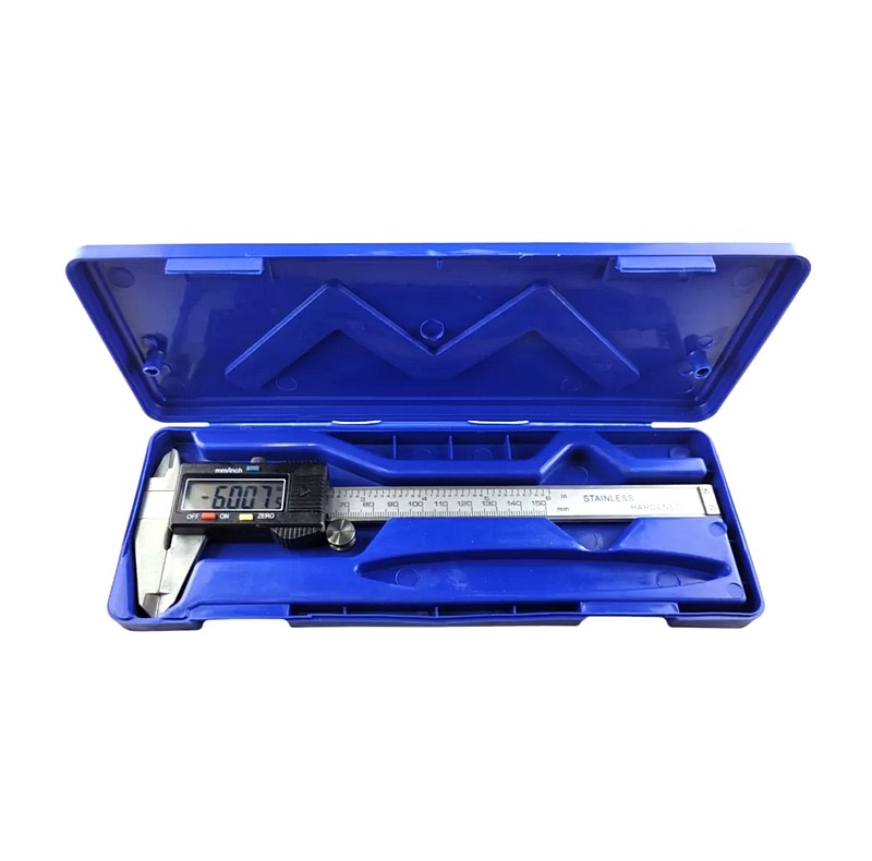 металл; длина 150мм; шаг измерений: 0.01мм; погрешность измерений: ±0.03мм; питание: батарея (в комплекте)