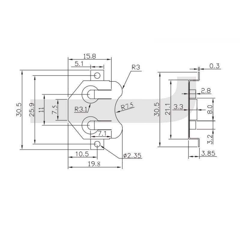 Отсек батарейный (тип 21) CR2032 L-KLS5-CR2032-09B