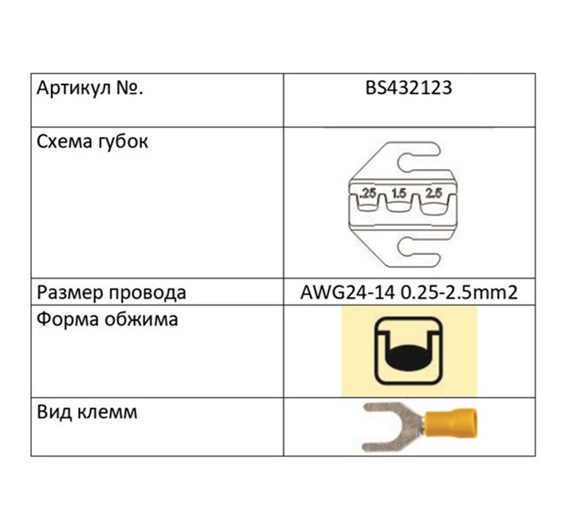 обжим изолированных клемм, наконечников; сечение: 0.25-2.5мм