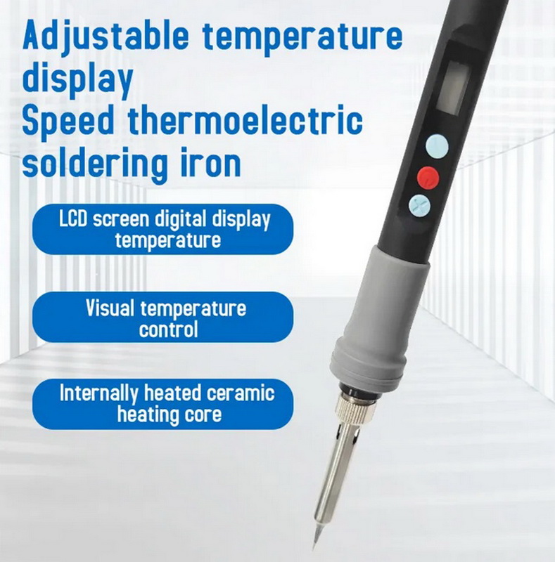 220V 90W, паяльник с рег.температуры, сменные жала серии 900М-Т 5шт, пинцет, оловоотсос, припой, подставка, губка, оплетка, кусачки
