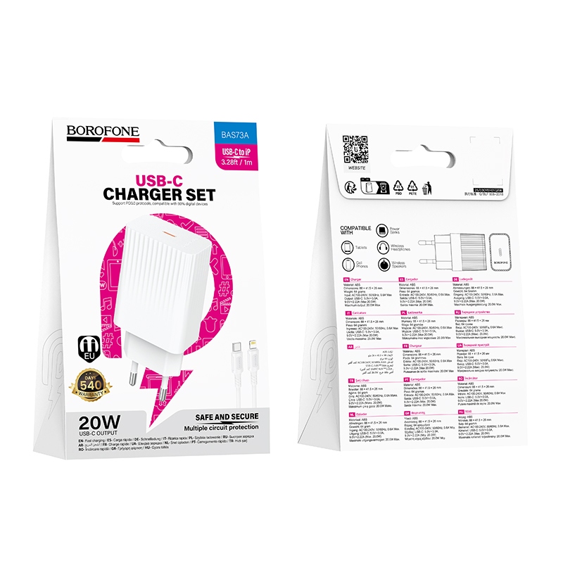 Сетевое зарядное устройство с выходом Type-C, 3.0А, 20W, белый, BAS73A Source, каб. Type-C-Lightning