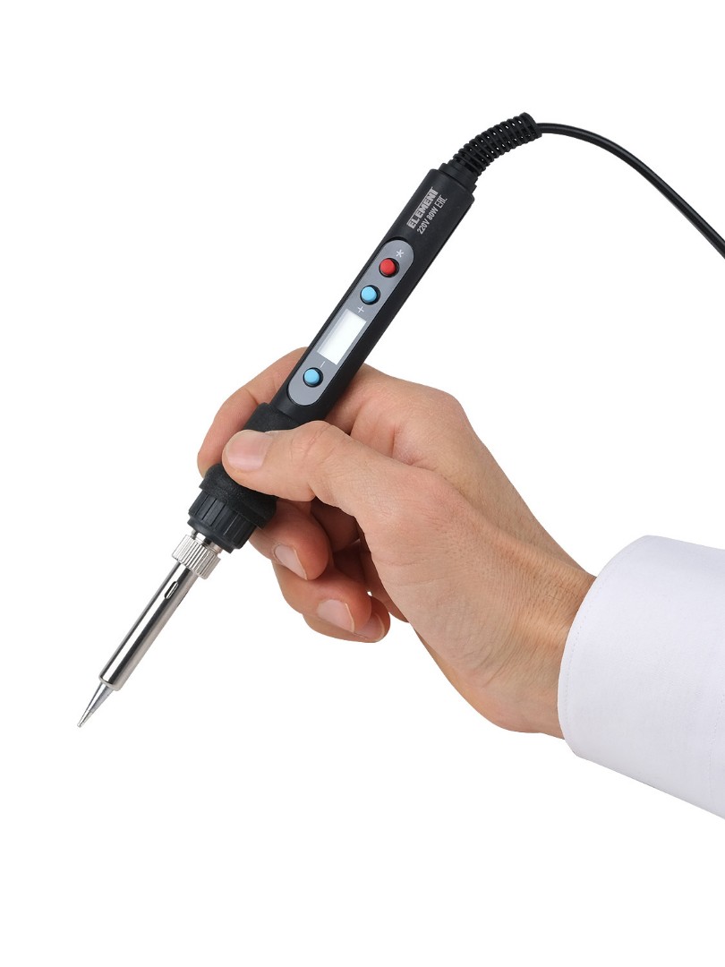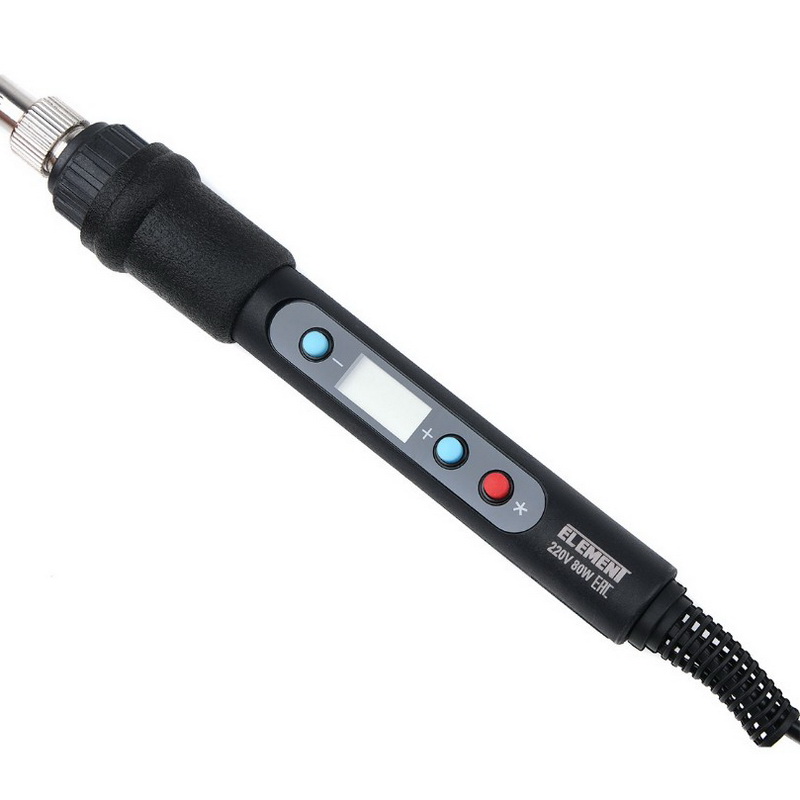 220V 80W, паяльник ELEMENT 575, сменные жала серии 900МТ 5шт, подставка для паяльника, канифоль, припой, губка