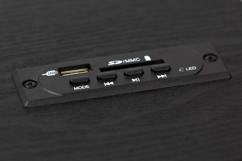 - Сабвуфер в комплекте;Слот Micro SD;Пульт ДУ