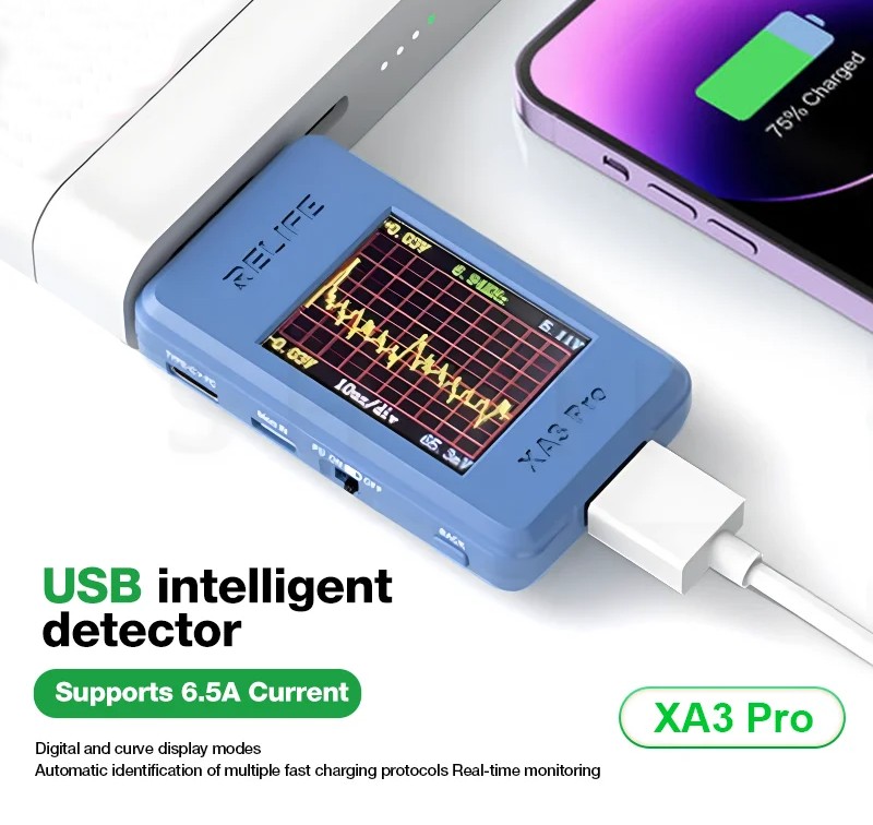 - Тестирования кабелей: определение их способности поддерживать быструю зарядку.