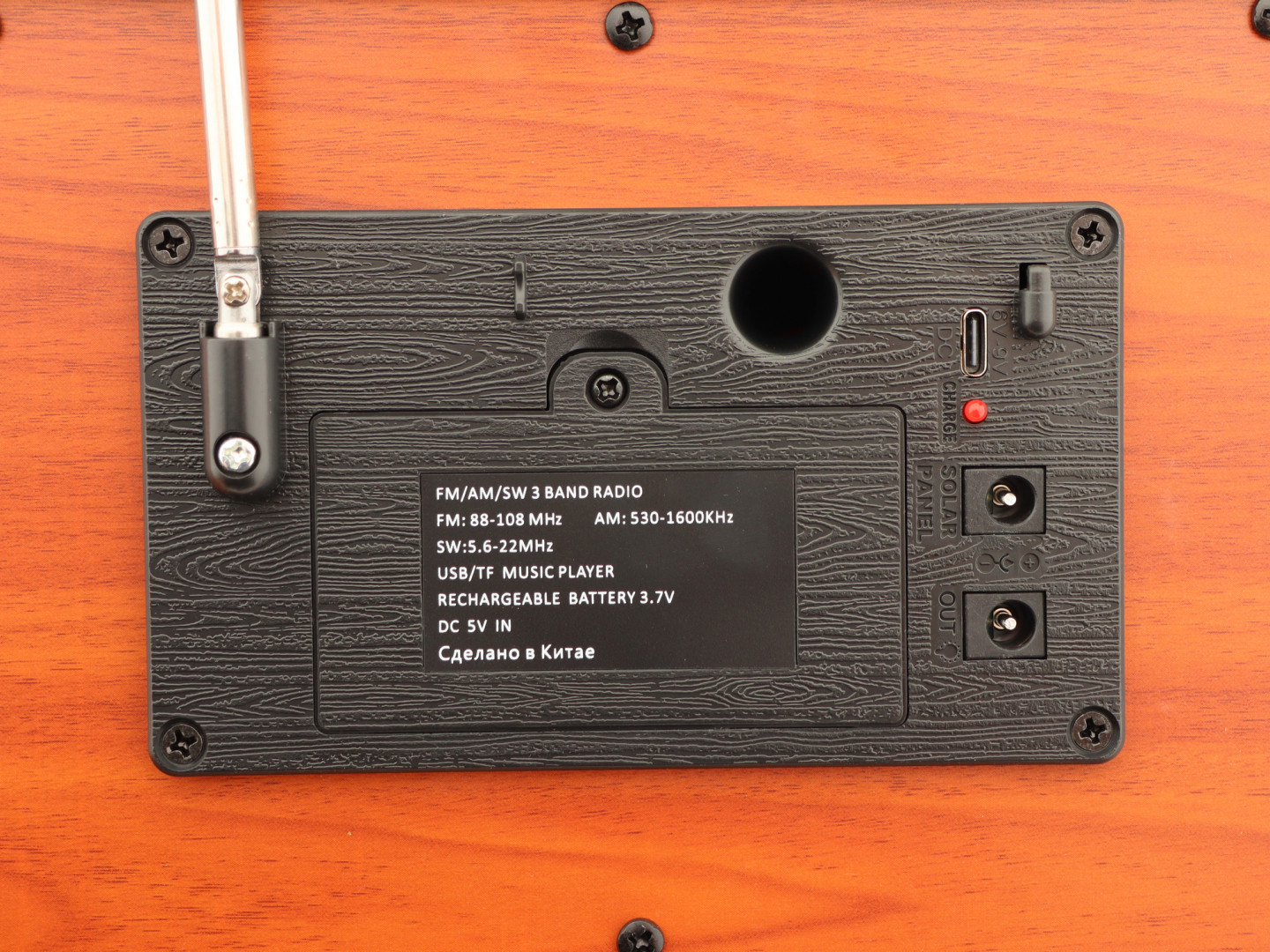 УКВ 88,0-108.0МГц; СВ 530-1600 кГц; КВ 5,6-22,0МГц; Bluetooth, USB, microSD, AUX; Питание от аккумулятора 18650(в комплекте). Зарядка через шнур USB