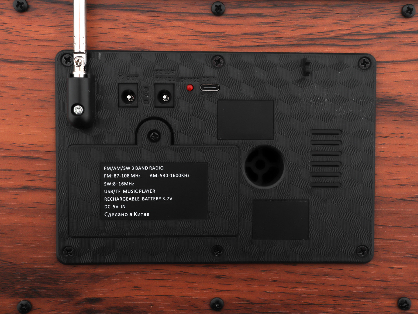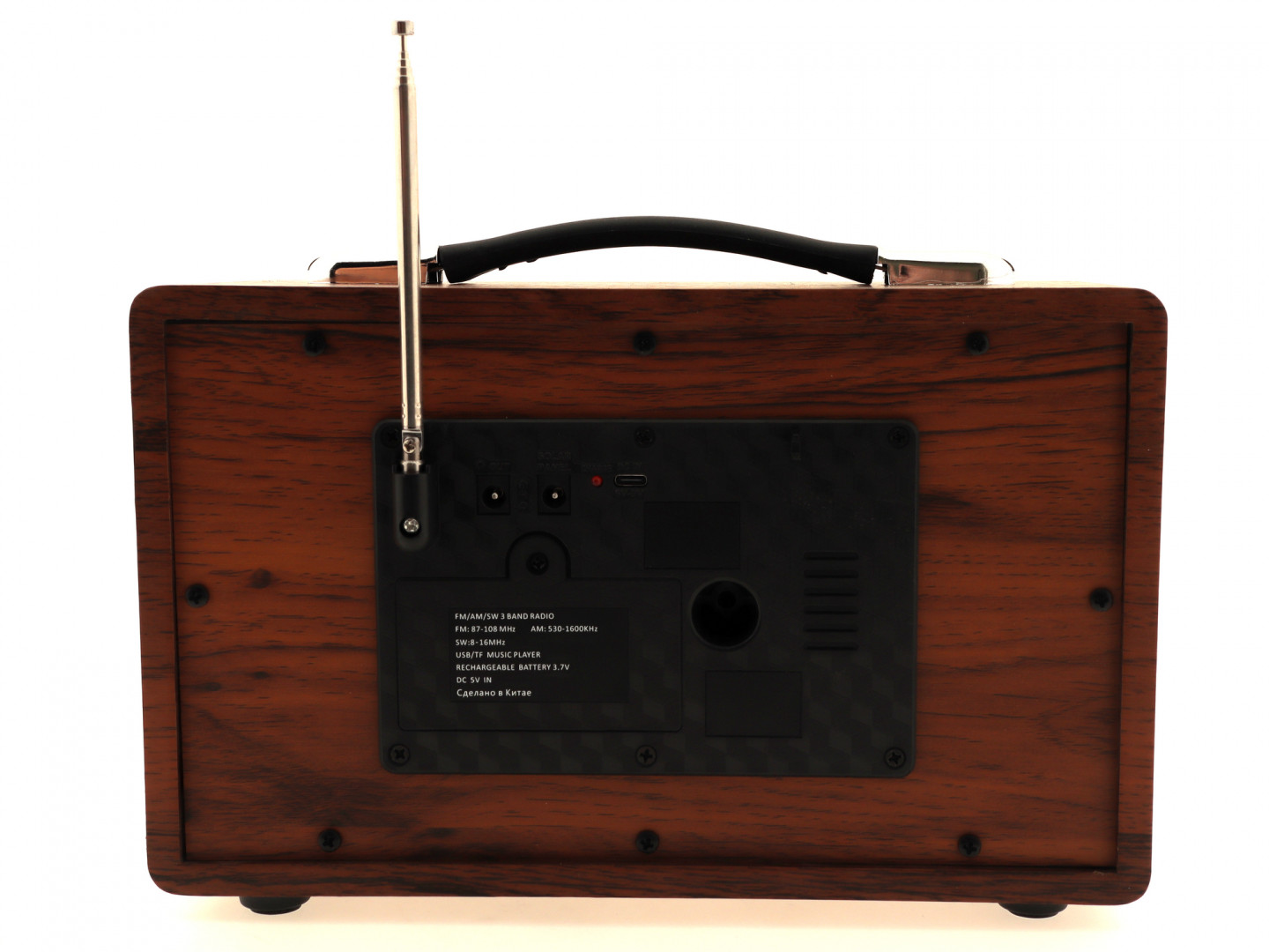 УКВ 88,0-108.0МГц; СВ 53,0-160,0 кГц; КВ 8,0-16,0МГц; Bluetooth, USB, microSD, AUX; Питание от аккумулятора 18650(в комплекте). Зарядка через шнур USB
