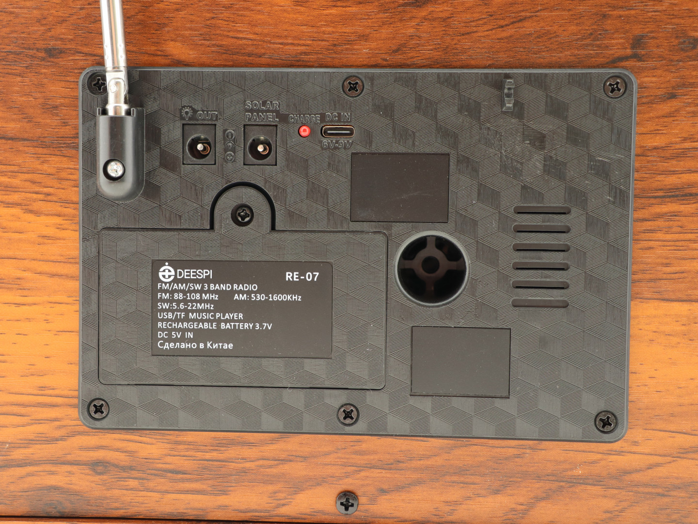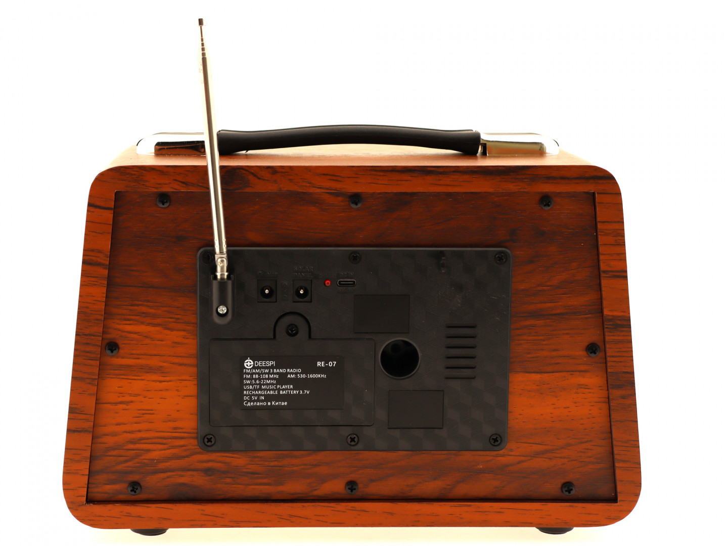 УКВ 88,0-108.0МГц; СВ 53,0-160,0 кГц; КВ 8,0-16,0МГц; Bluetooth, USB, microSD, AUX; Питание от аккумулятора 18650(в комплекте) . Зарядка через шнур USB