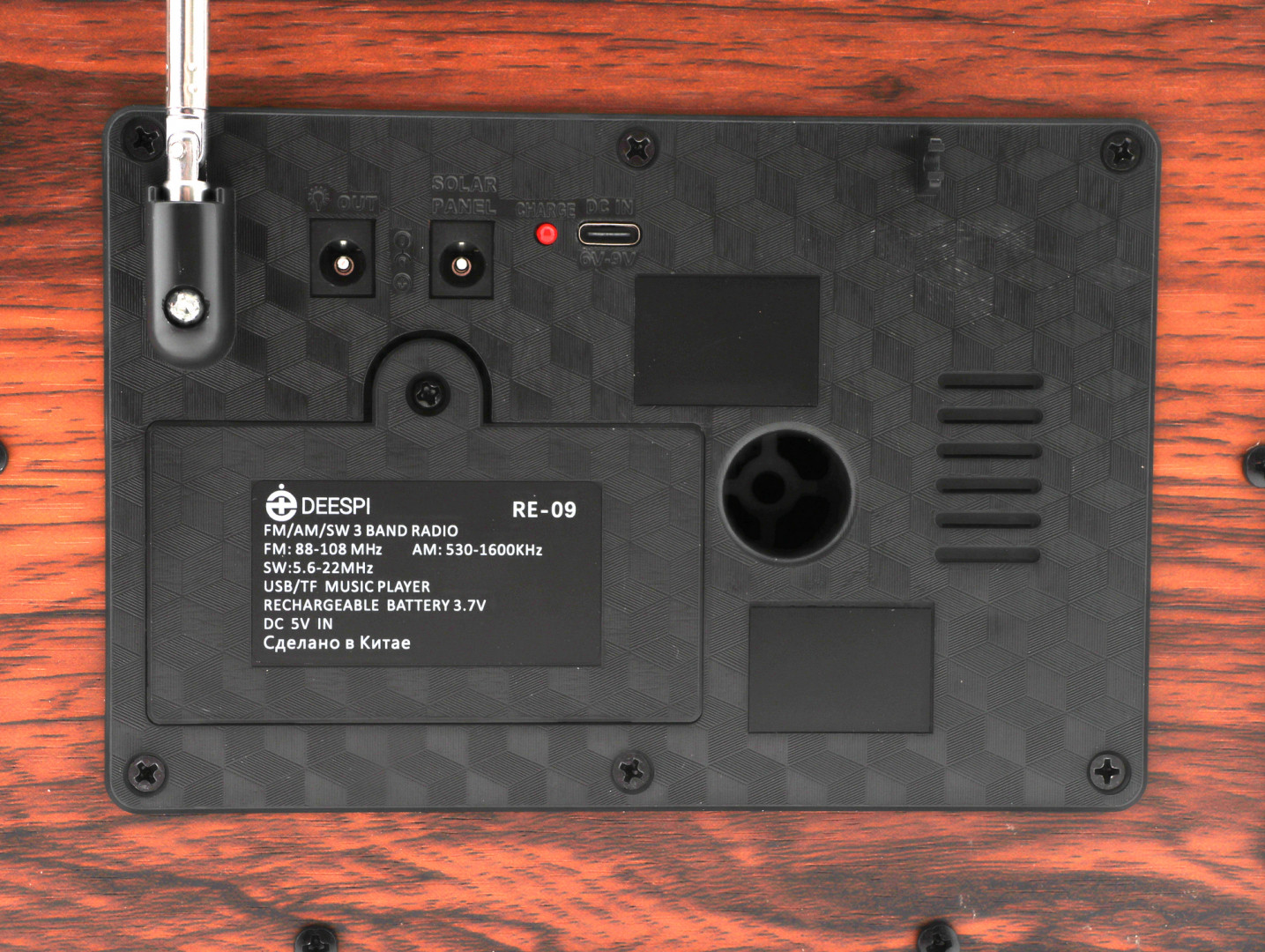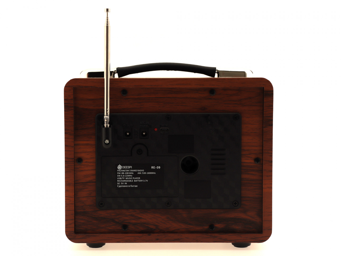 УКВ 88,0-108.0МГц; СВ 53,0-160,0 кГц; КВ 8,0-16,0МГц; Bluetooth, USB, microSD, AUX; Питание от аккумулятора 18650(в комплекте). Зарядка через шнур USB