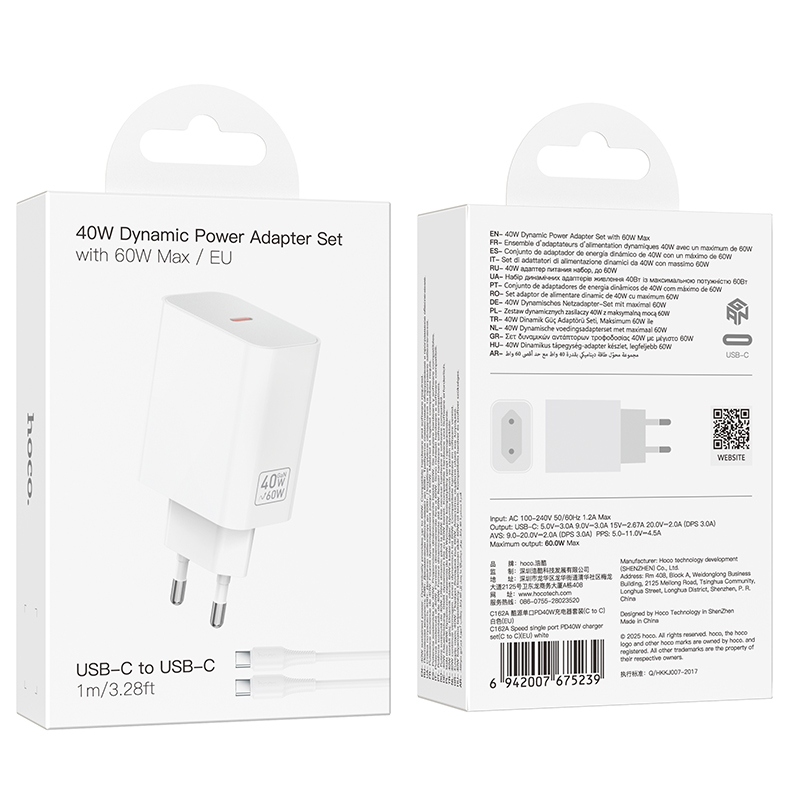 PD40W/max 60W; Uвх=100-240VAC; UвыхType-C=DC5V/3.0A,9V/3.0A,15V/2.67A, 20V/2A; протокол PD3.2 PPS: 5.0-11.0V/4.5A; AVS:9.0-20.0/2.0A; уп.23/138шт.