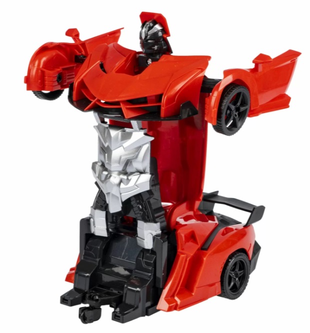 Передвиньте рычаг в положение ON, чтобы включить пульт. Направляйте масштабную модель машинки 1:18, у которой светятся фары, или робота вперед, назад, вправо, влево, манипулируя двумя красными ручками. Дистанционно совершите волшебную трансформацию робота в машину и наоборот, с помощью двух больших красных кнопок.