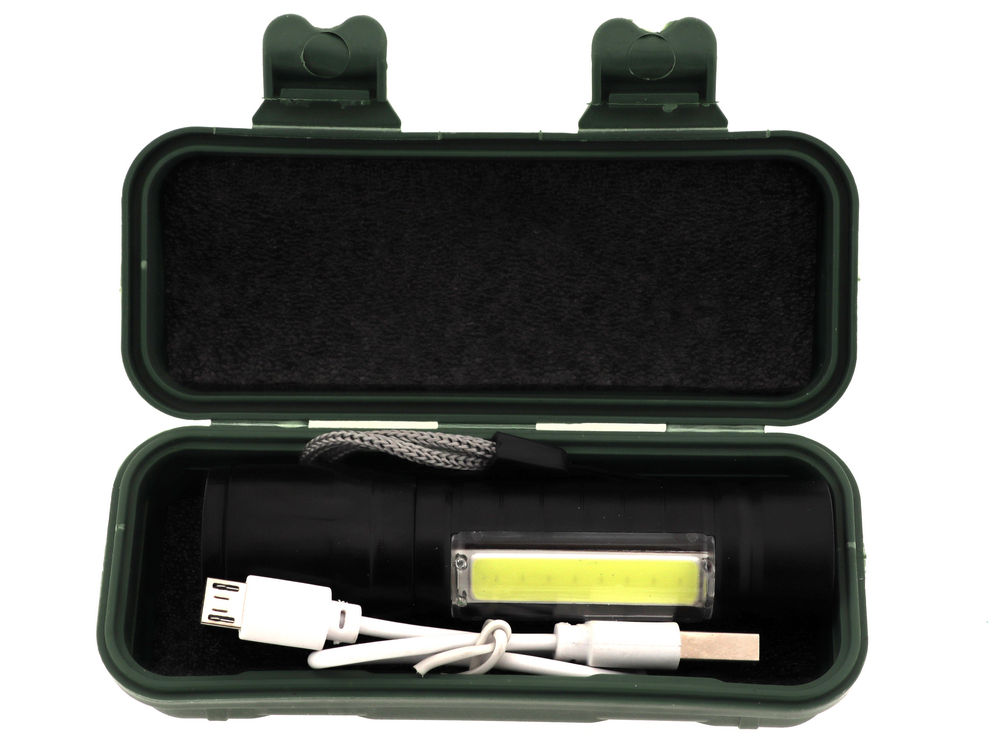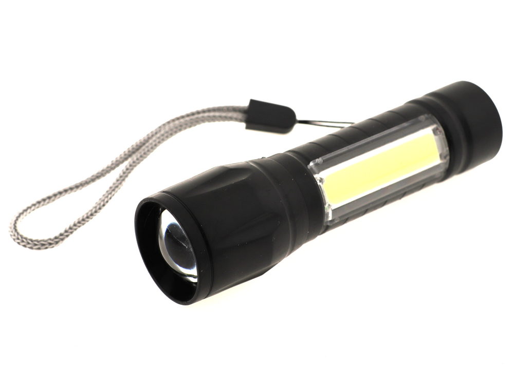 1LED + COB LED; ZOOM. питание от встроенного акб, зарядка через разъем USB