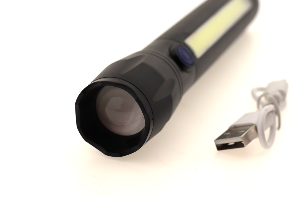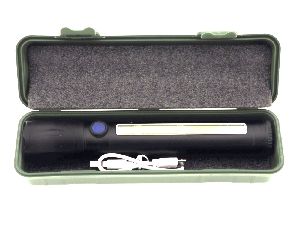 1LED + COB LED; ZOOM. питание от встроенного акб, зарядка через разъем USB